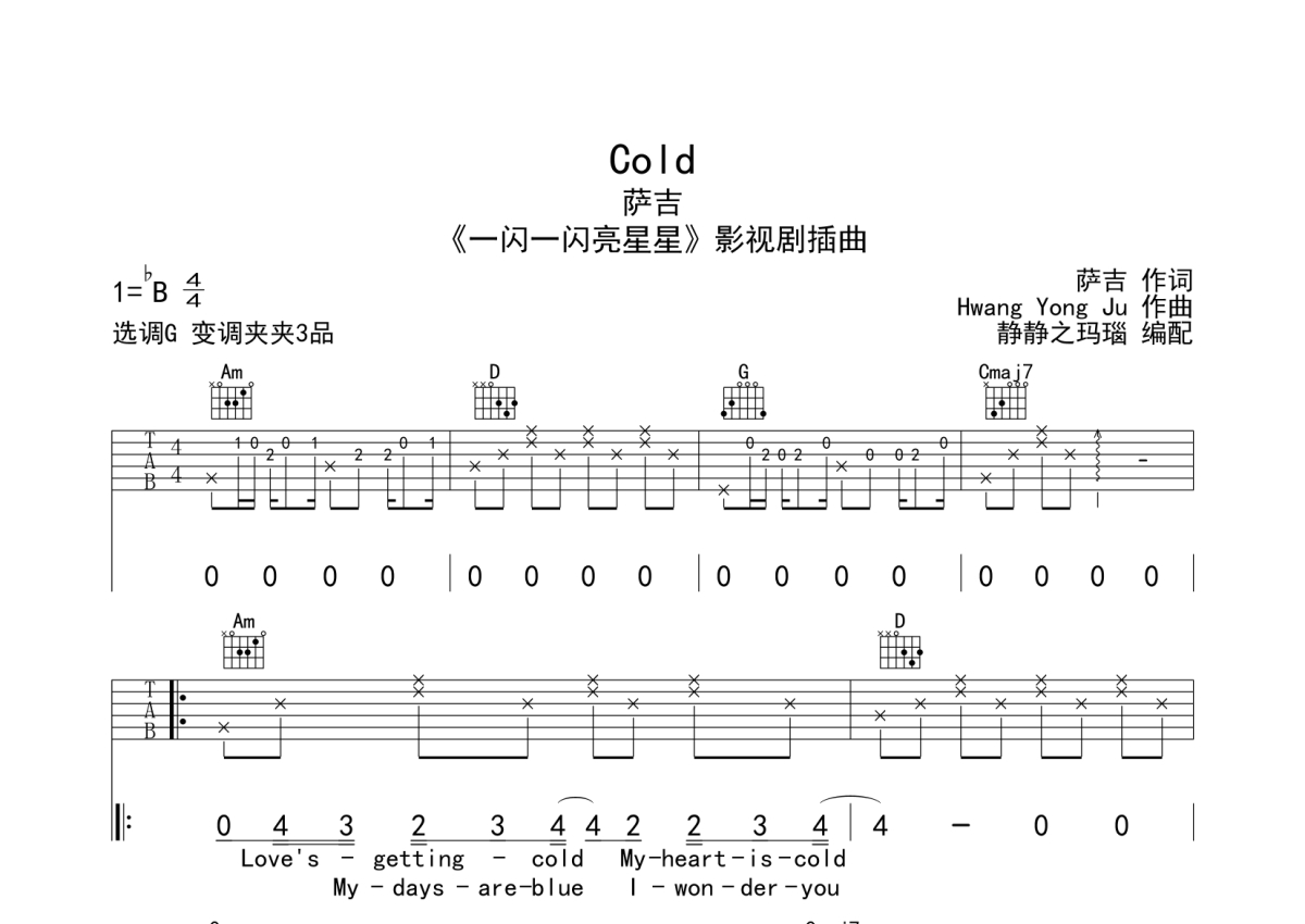萨吉《Cold》吉他谱 - G调弹唱六线谱