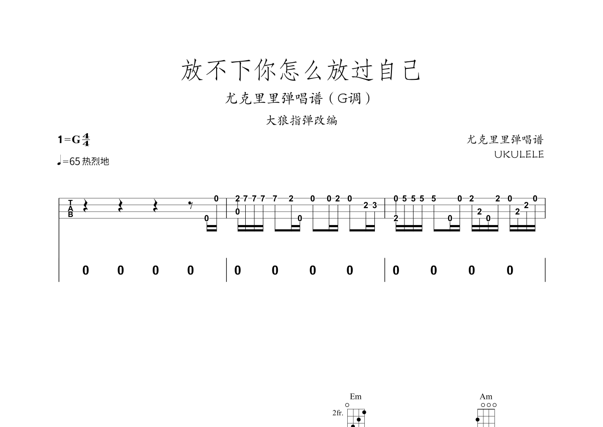 大潞《放不下你怎么放过自己》尤克里里谱 - G调尤克里里谱