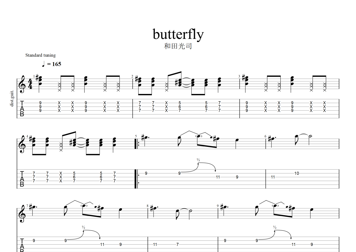 和田光司《butterfly》电吉他谱 - 原版