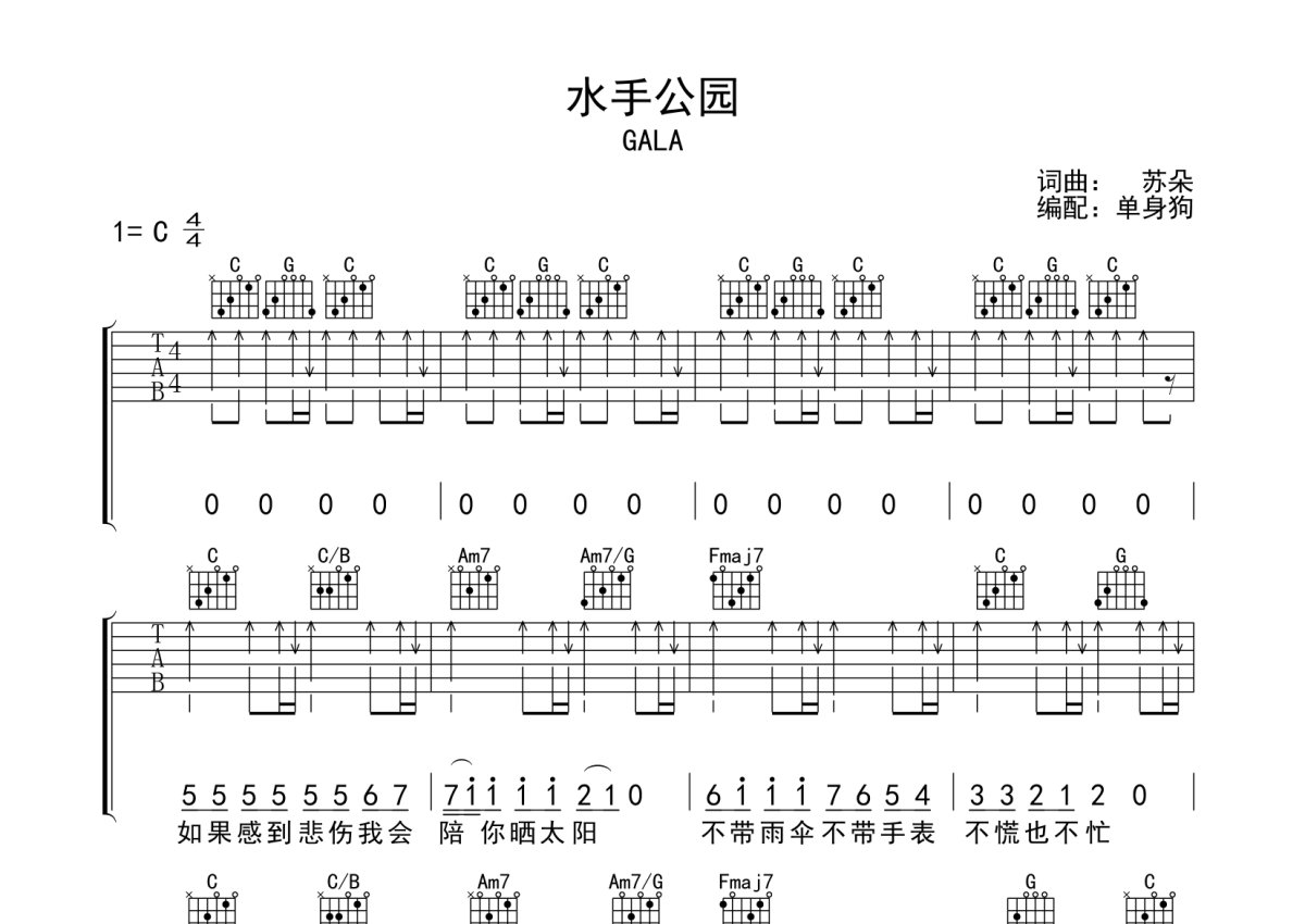 GALA《水手公园》吉他谱 - C调弹唱六线谱