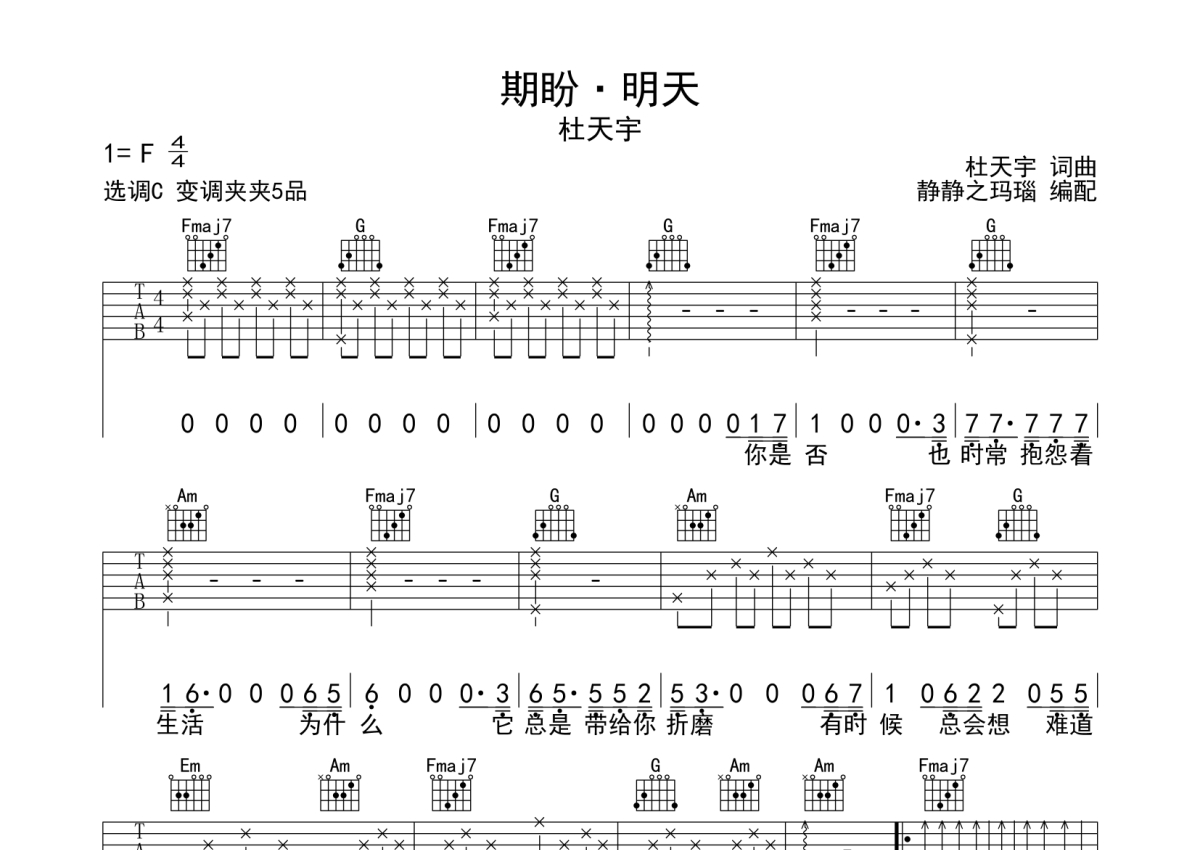 杜天宇《期盼·明天》吉他谱 - C调弹唱六线谱