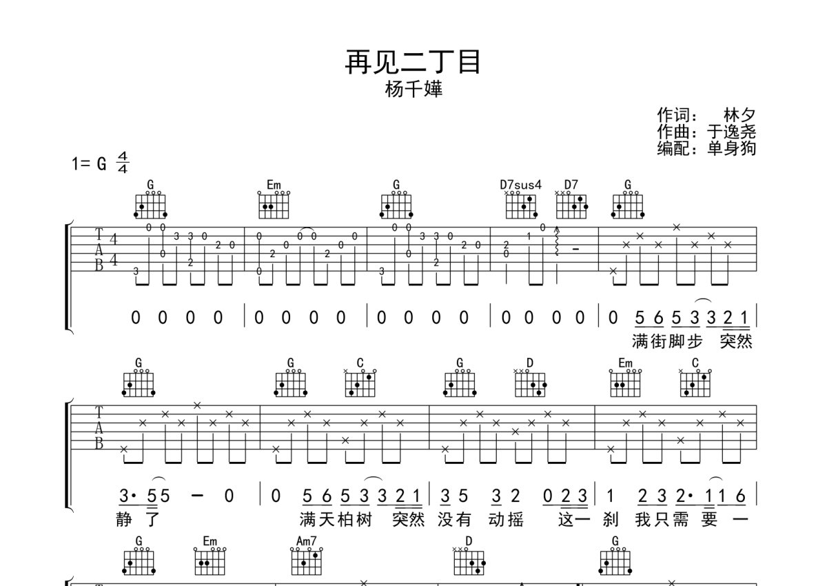 杨千嬅《再见二丁目》吉他谱 - G调弹唱六线谱