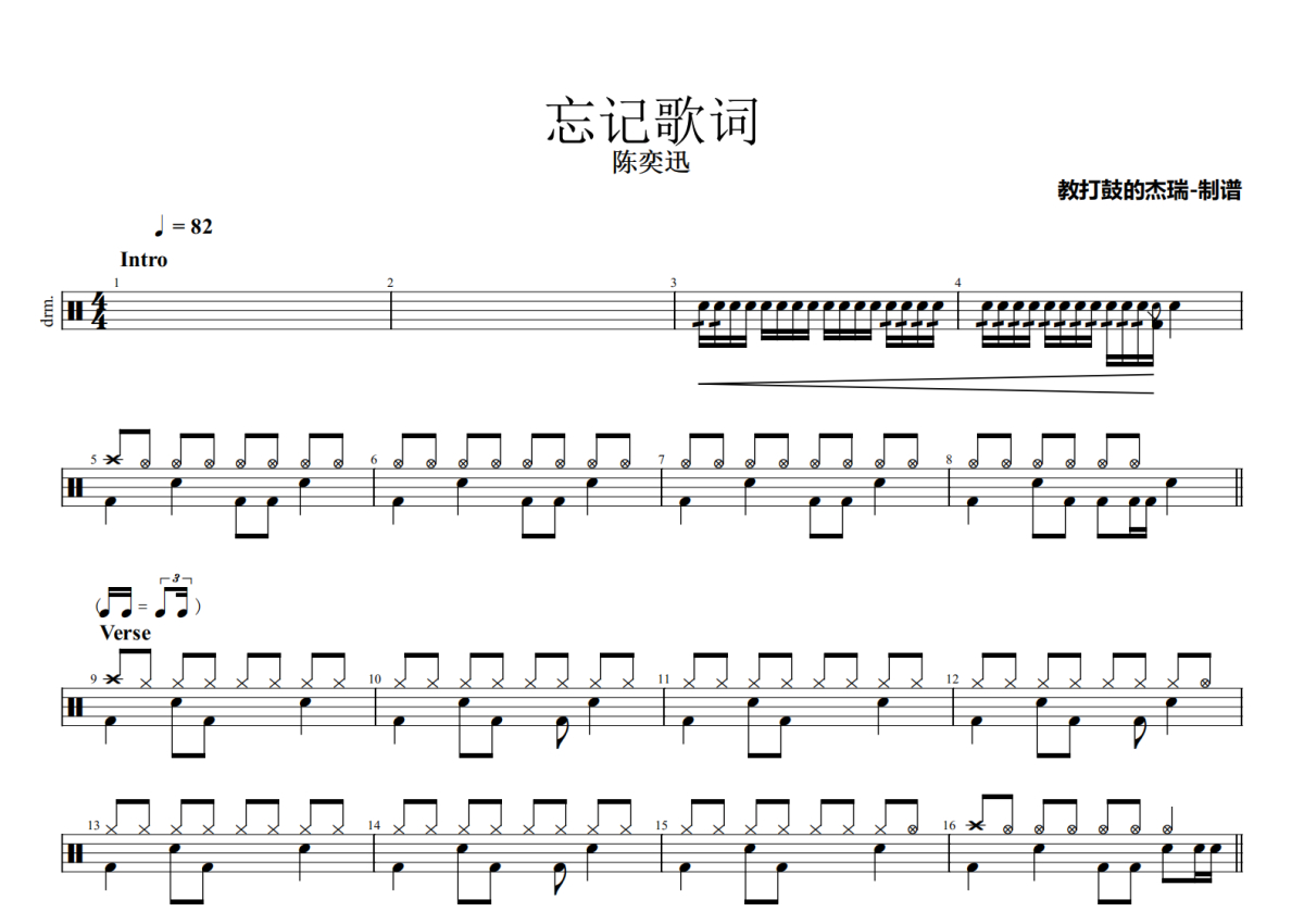 陈奕迅《忘记歌词》鼓谱 - 架子鼓谱