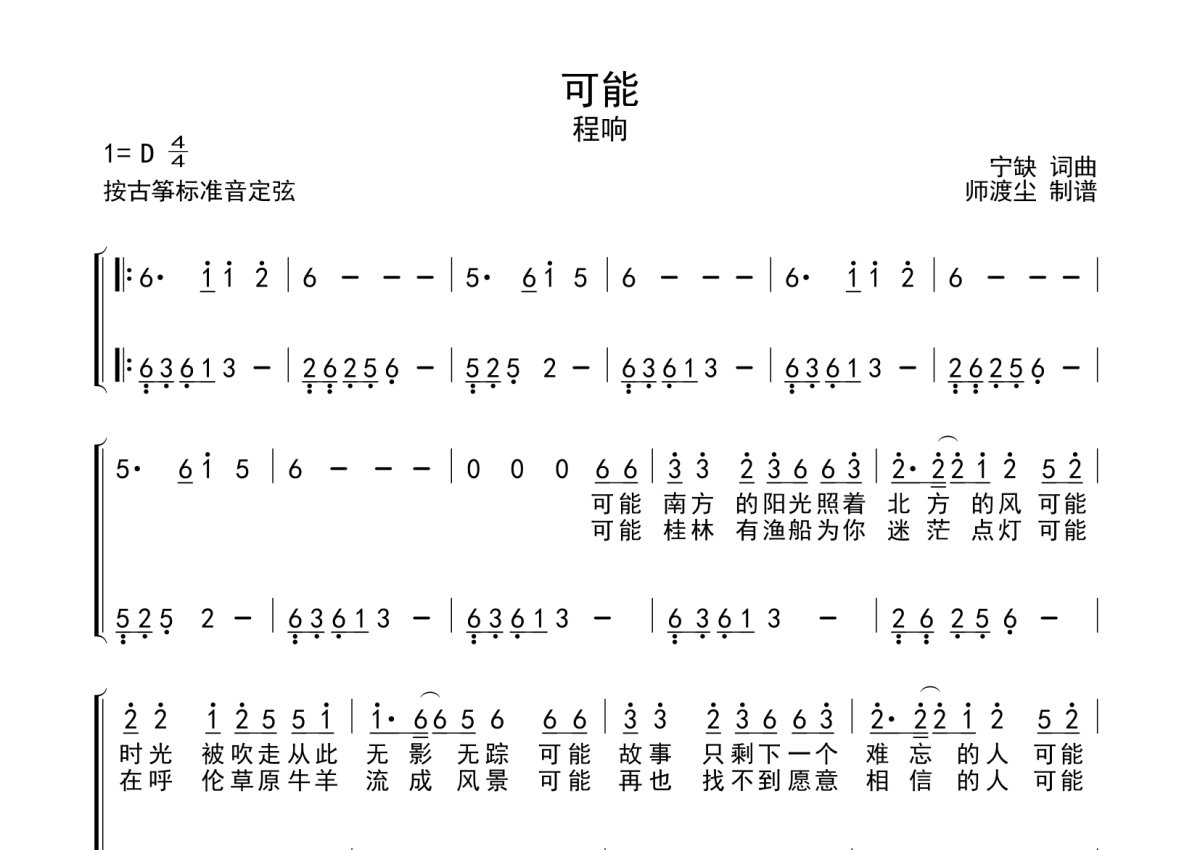 《可能》是程响演唱的一首歌曲,这份古筝谱共有两张高清图谱,图谱由 @师渡尘 编配上传。
