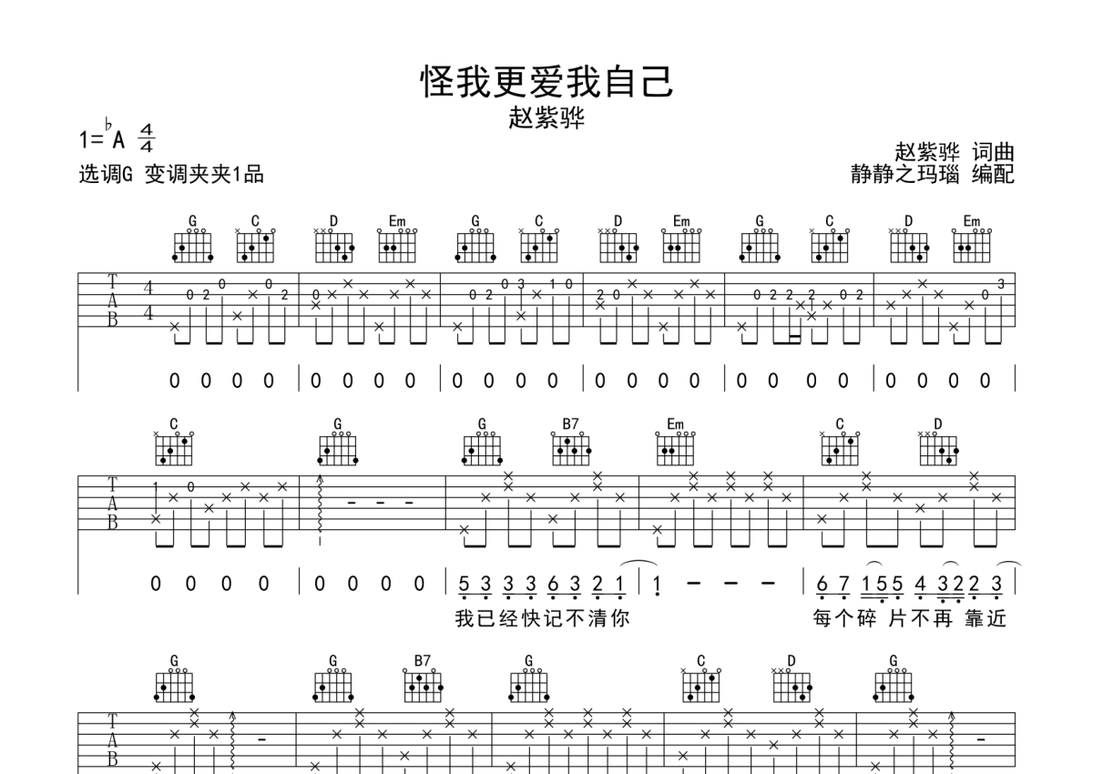 赵紫骅《怪我更爱我自己》吉他谱 - G调弹唱六线谱