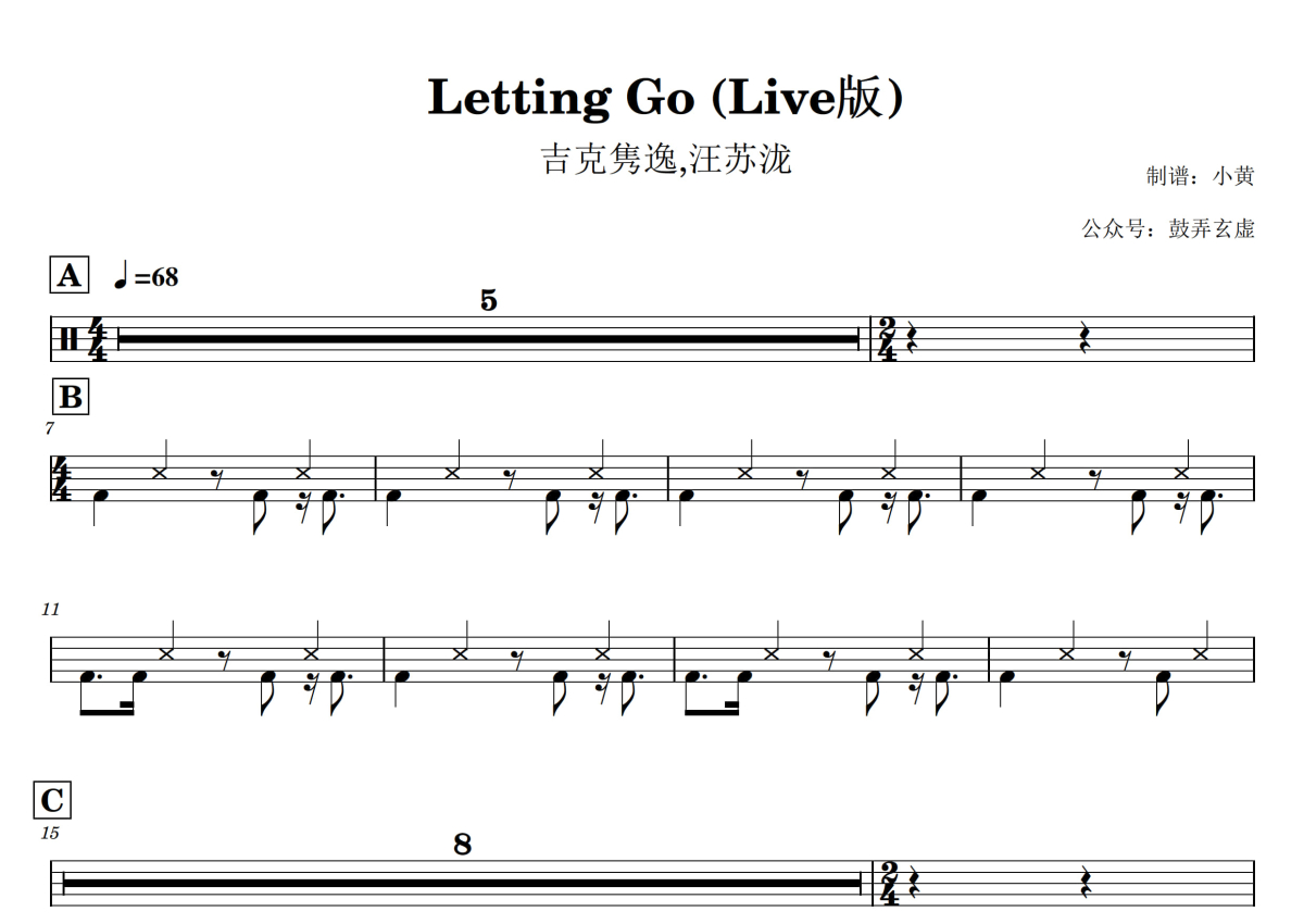 吉克隽逸/汪苏泷《Letting Go》鼓谱 - 架子鼓谱 - Live版