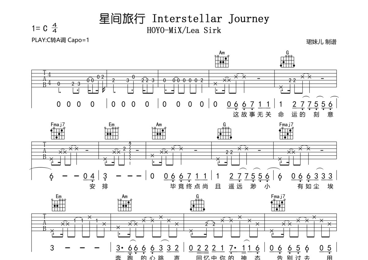 HOYO-MiX /茶理理理子《星间旅行 Interstellar Journey》吉他谱 - C调弹唱六线谱