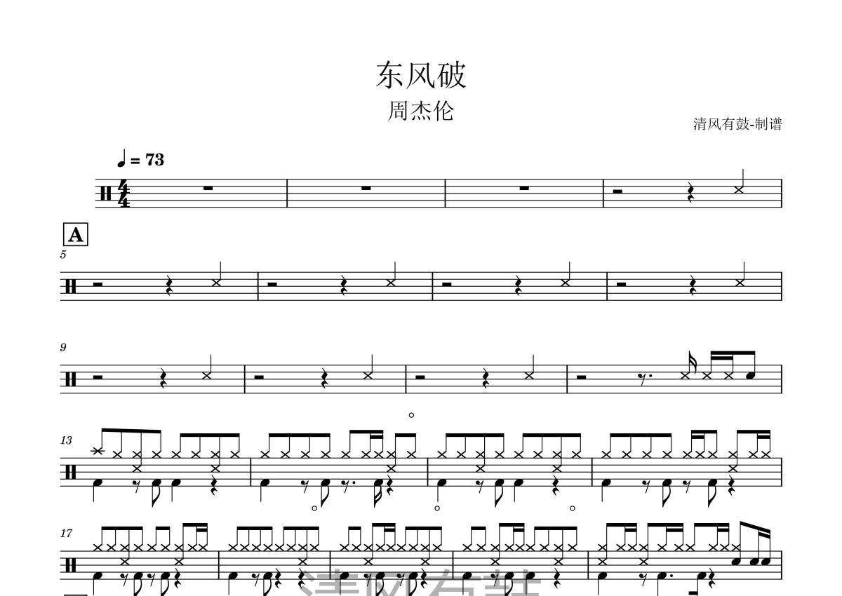 周杰伦《东风破》鼓谱 - 架子鼓谱