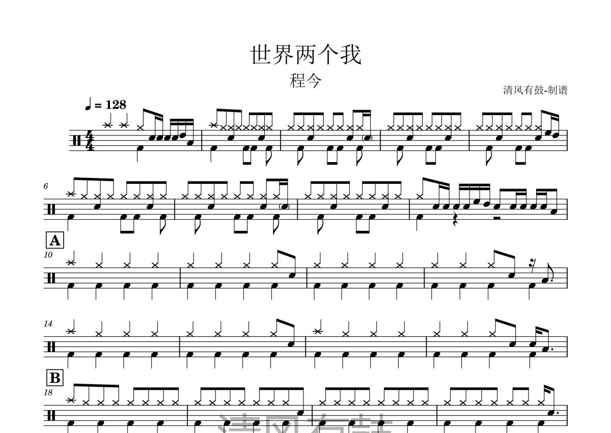 程今《世界两个我》鼓谱 - 架子鼓谱