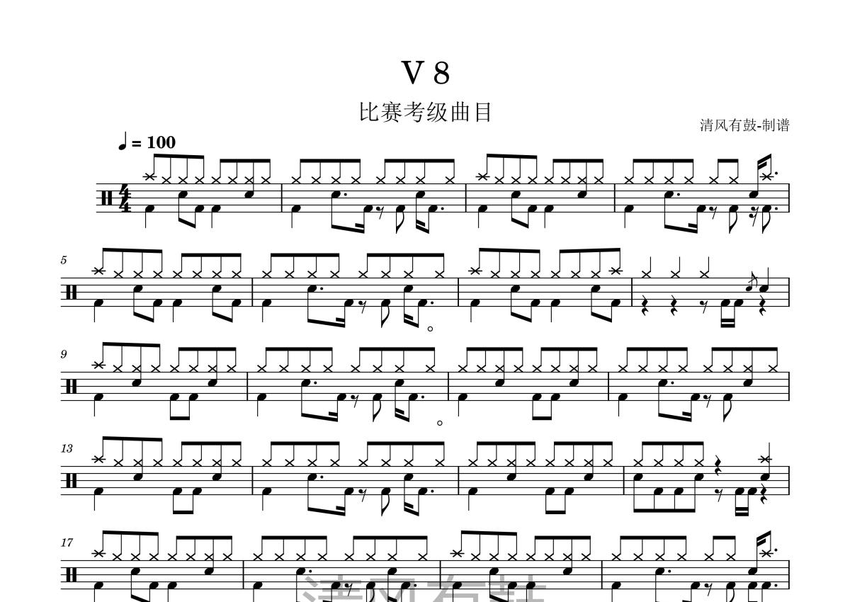 考级比赛曲目《V8》鼓谱 - 架子鼓谱