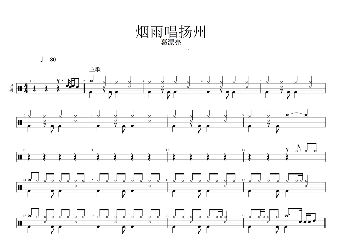 葛漂亮《烟雨唱扬州》鼓谱 - 架子鼓谱