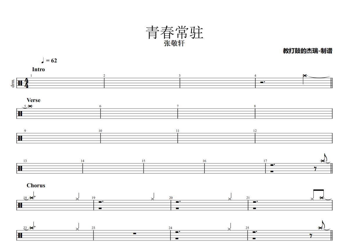 张敬轩《青春常驻》鼓谱 - 架子鼓谱