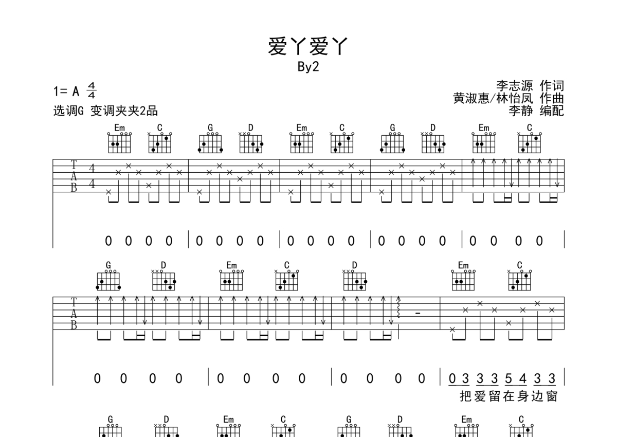 By2《爱丫爱丫》吉他谱 - G调弹唱六线谱