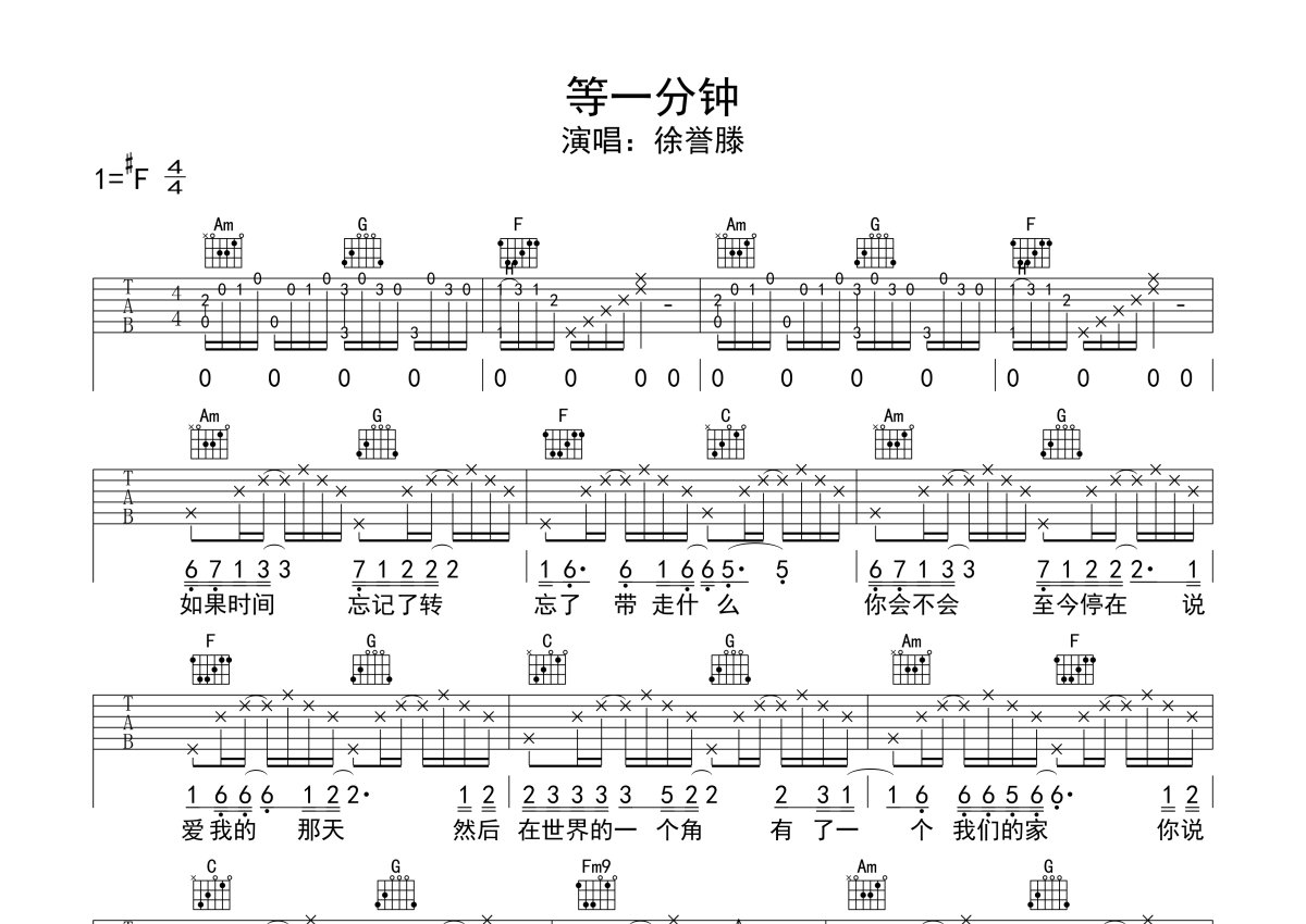 徐誉滕《等一分钟》吉他谱 - C调弹唱六线谱