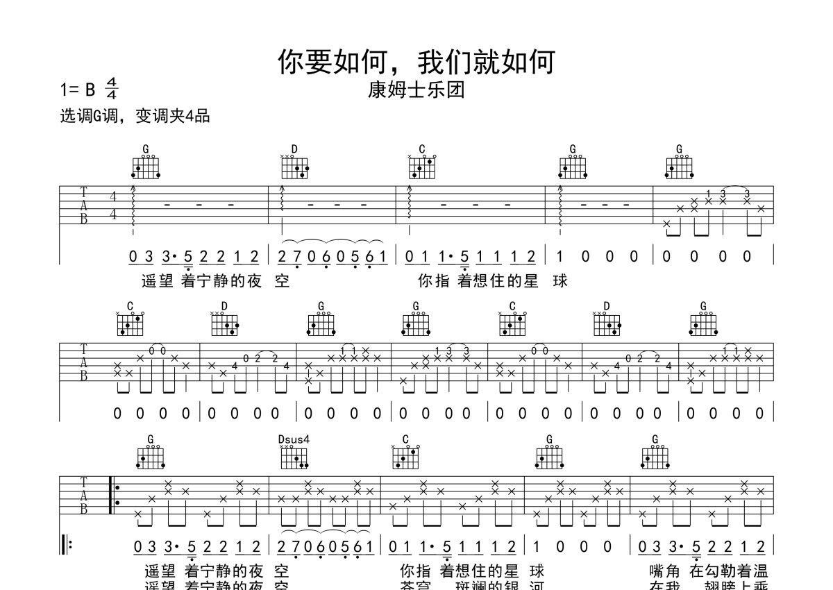 康姆士乐团《你要如何,我们就如何》吉他谱 - G调弹唱六线谱