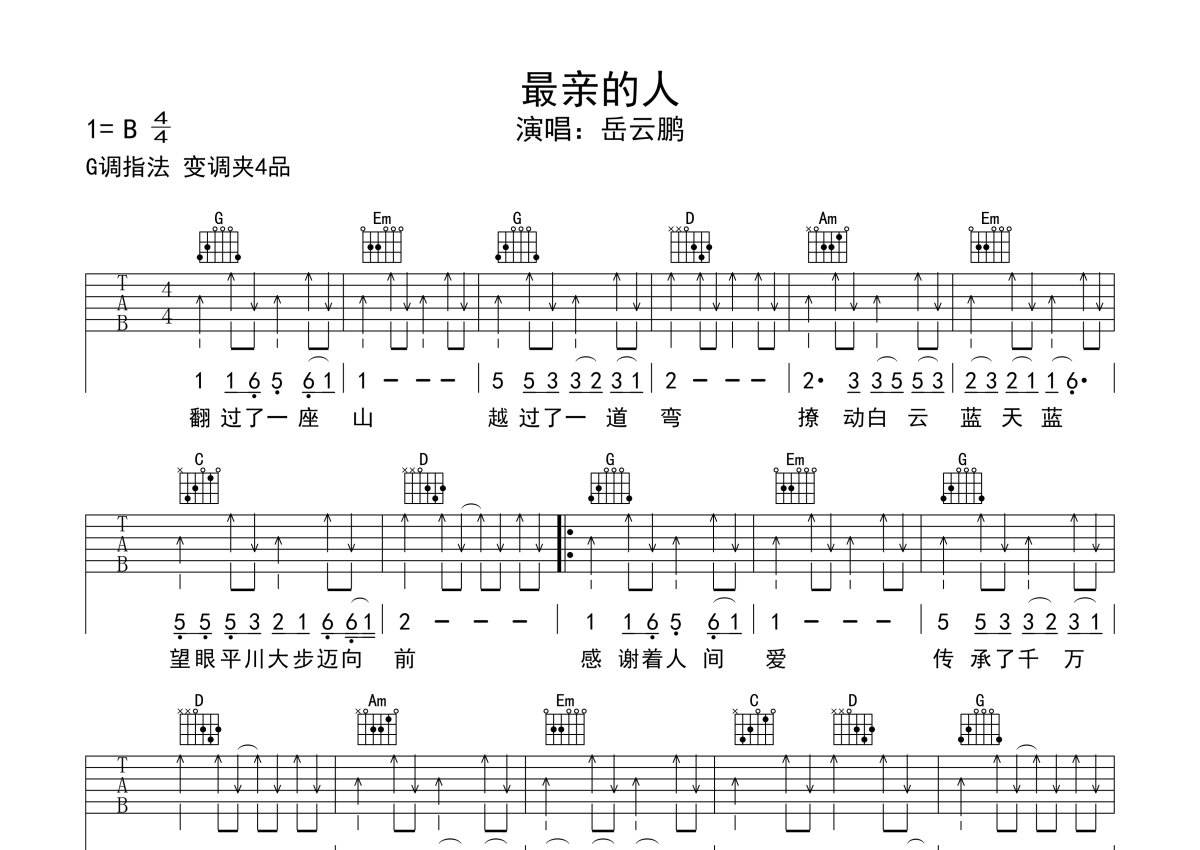 岳云鹏《最亲的人》吉他谱 - G调弹唱六线谱