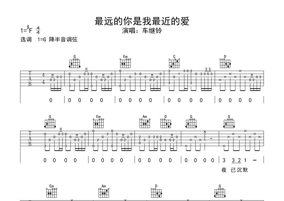 车继铃《最远的你是我最近的爱》吉他谱 - G调弹唱六线谱