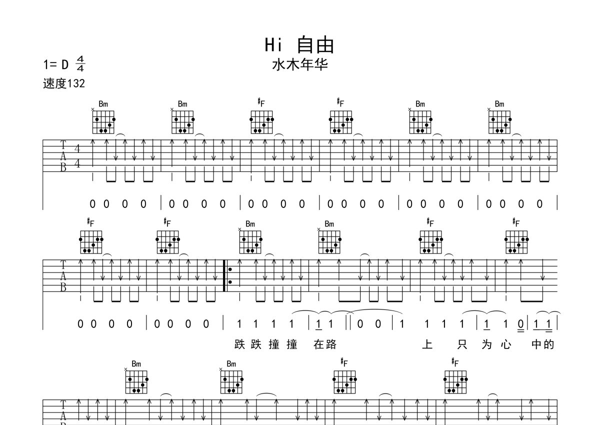 水木年华《Hi 自由》吉他谱 - 弹唱六线谱