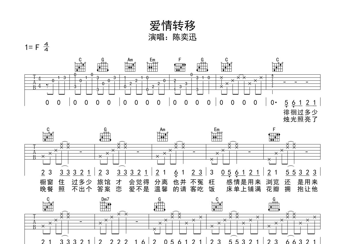 陈奕迅《爱情转移》吉他谱 - C调弹唱六线谱