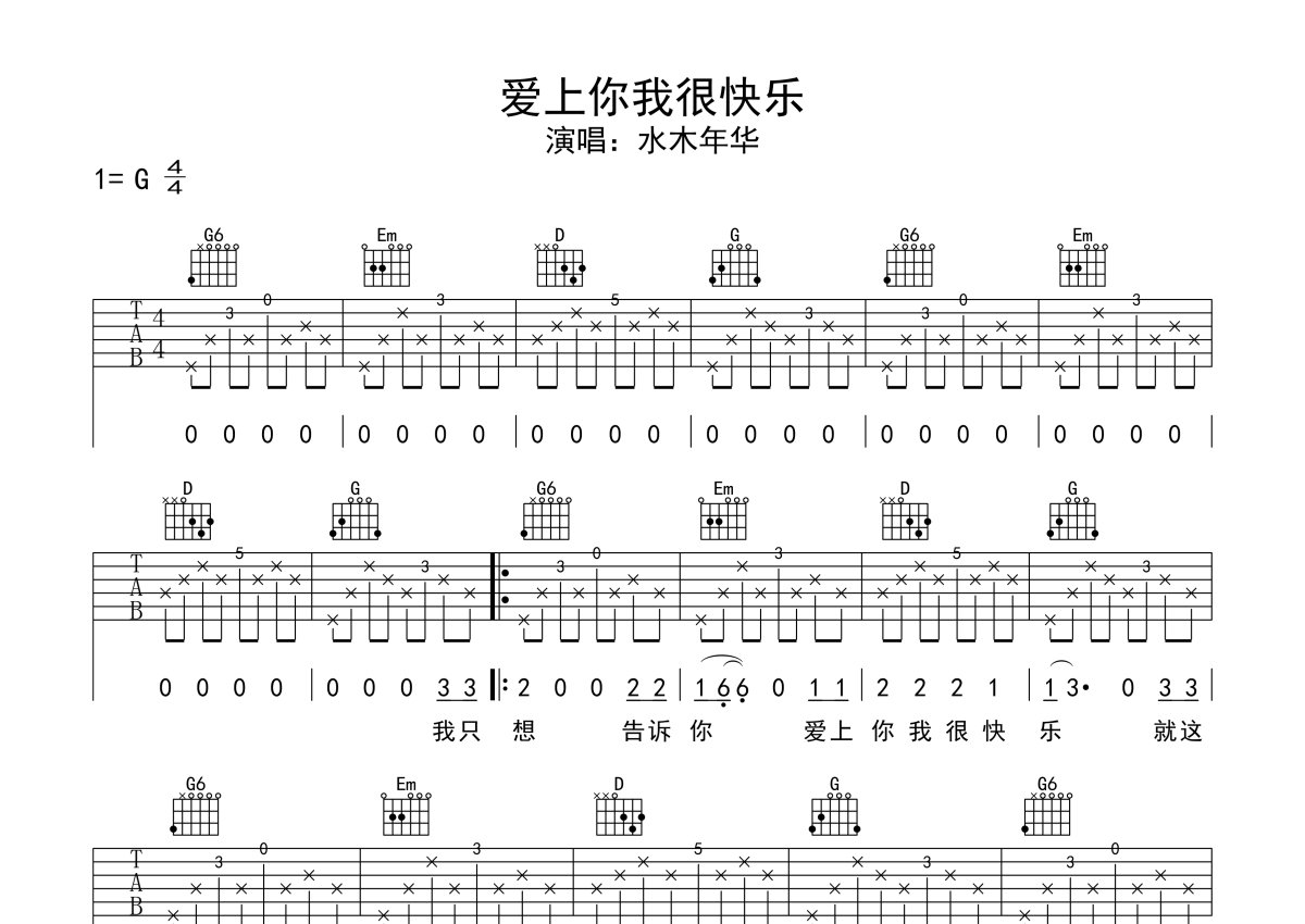 水木年华《爱上你我很快乐》吉他谱 - G调弹唱六线谱