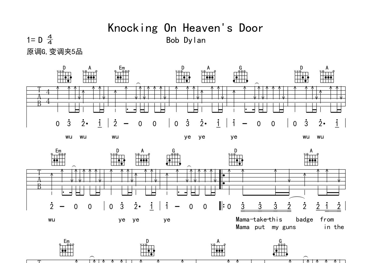 Bob Dylan《Knocking On Heaven's Door》吉他谱 - D调弹唱六线谱