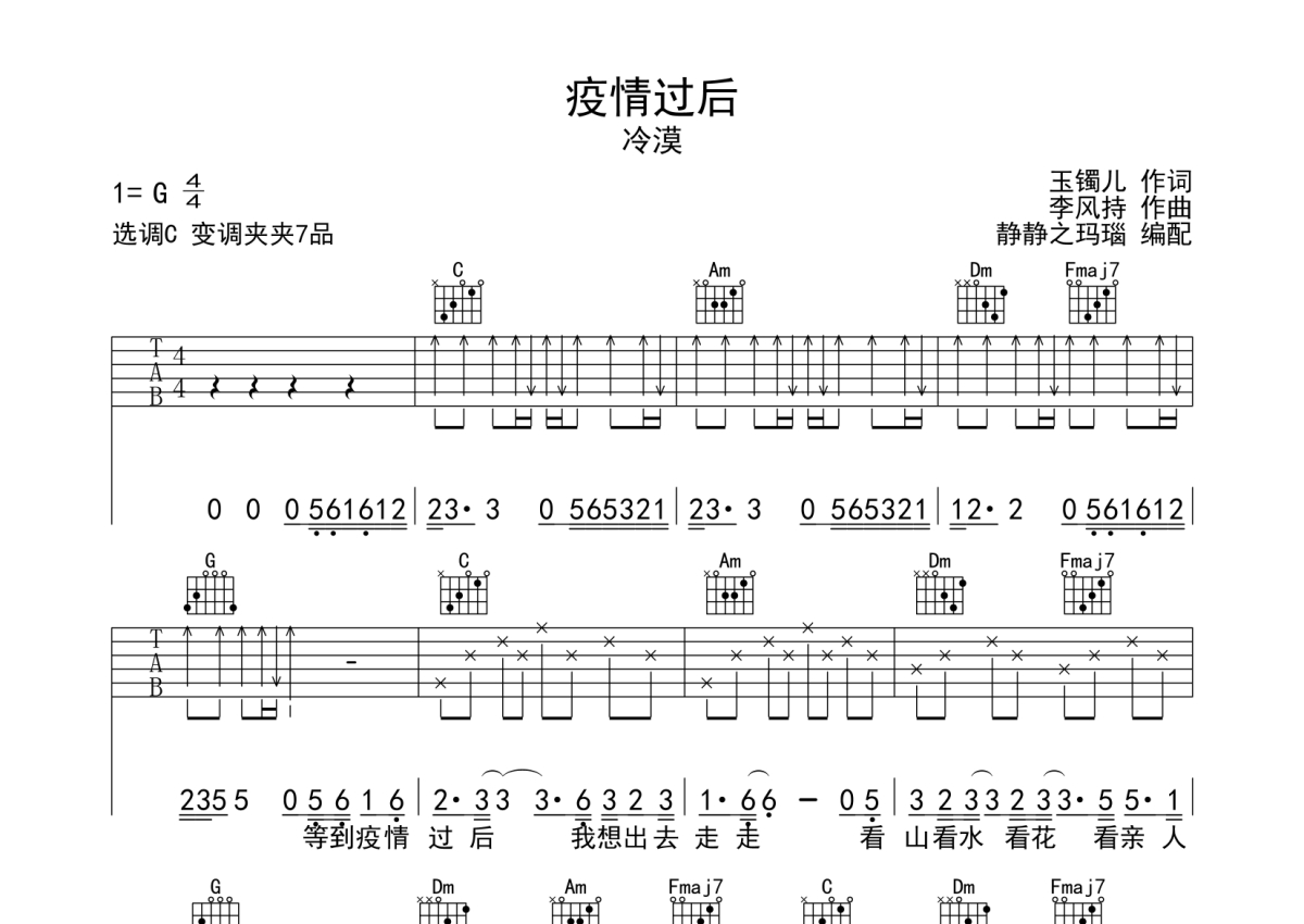 冷漠《疫情过后》吉他谱 - C调弹唱六线谱
