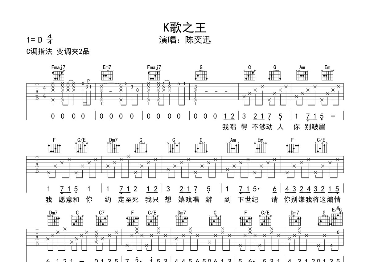 陈奕迅《K歌之王》吉他谱 - C调弹唱六线谱