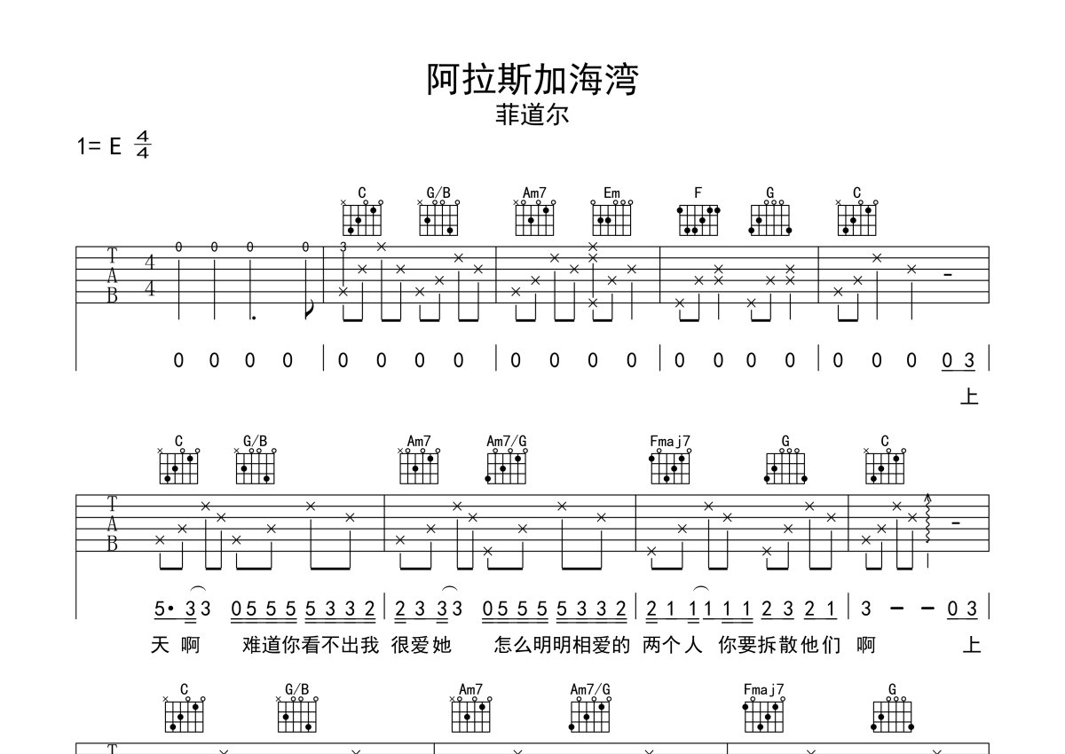 菲道尔《阿拉斯加海湾》吉他谱 - C调弹唱六线谱