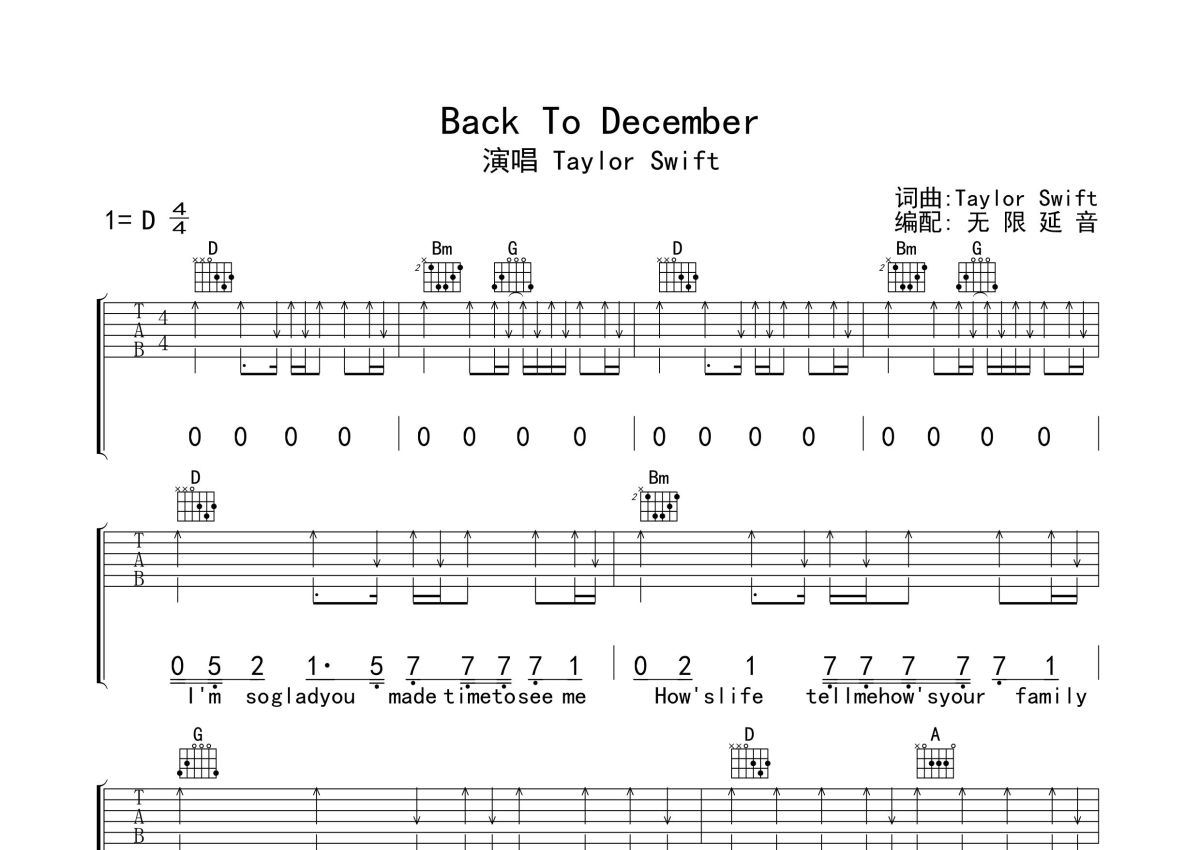 Taylor Swift《Back To December》吉他谱 - D调弹唱六线谱