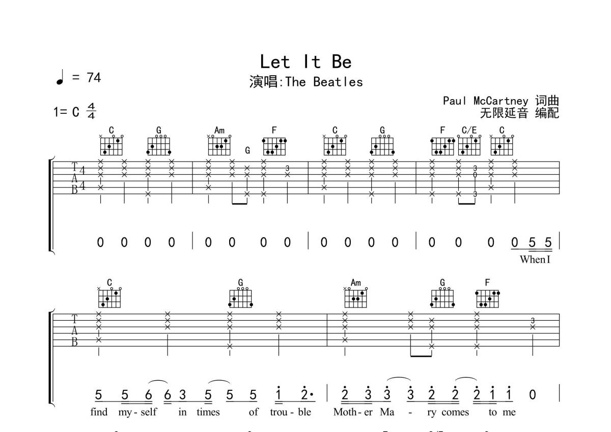 The Beatles《Let it be》吉他谱 - C调弹唱六线谱