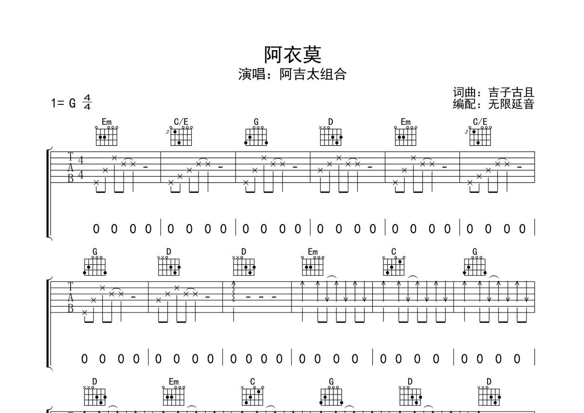 阿吉太组合《阿衣莫》吉他谱 - G调弹唱六线谱