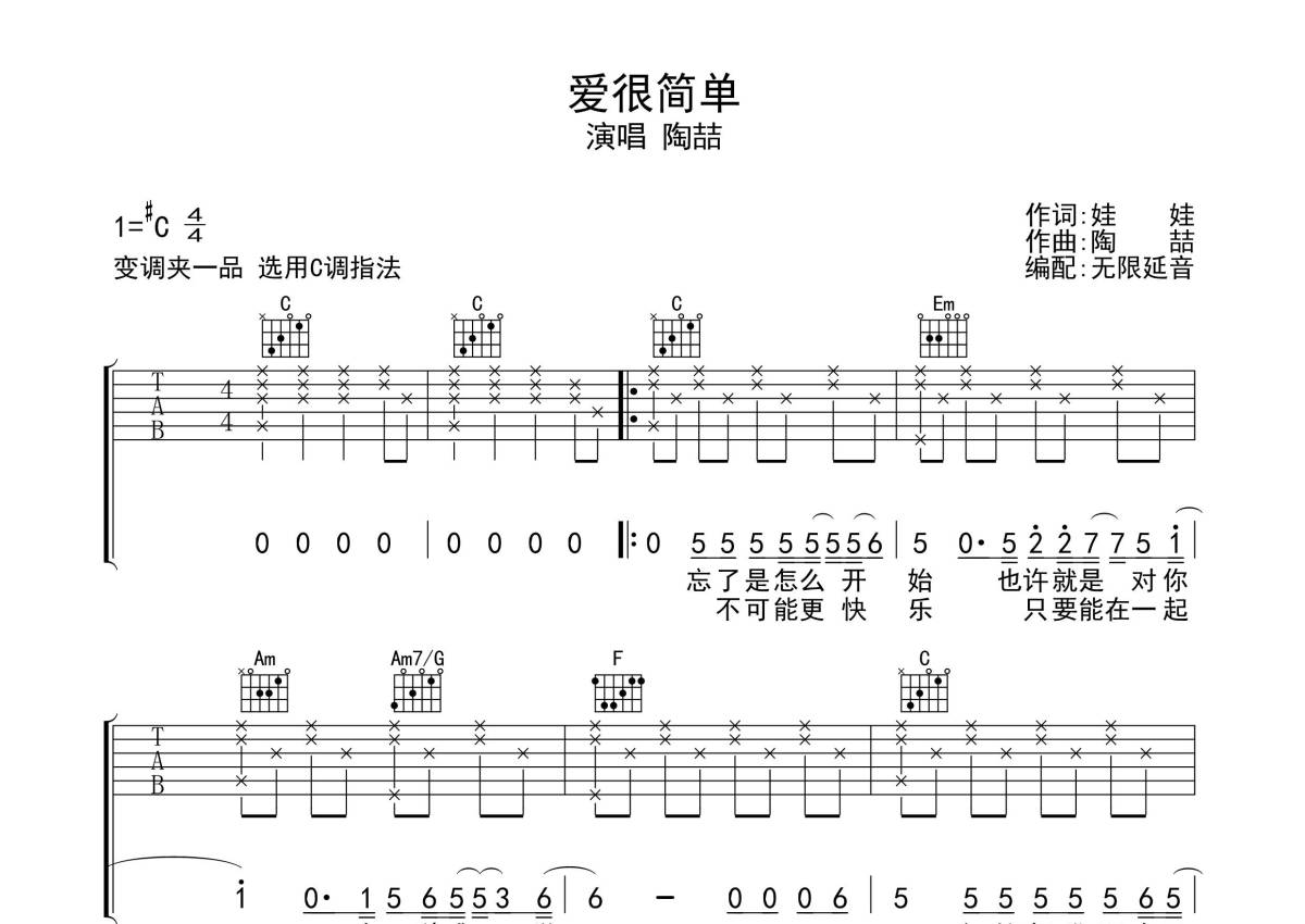 小洲《爱很简单》吉他谱 - C调弹唱六线谱