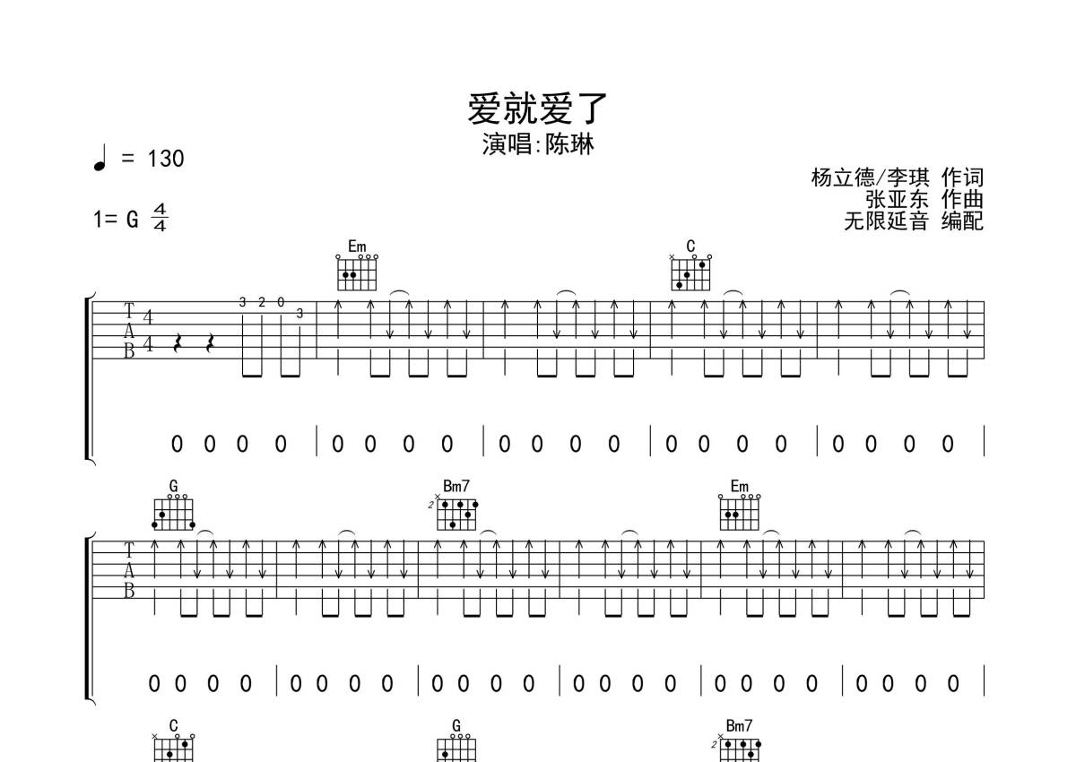 陈琳《爱就爱了》吉他谱 - G调弹唱六线谱