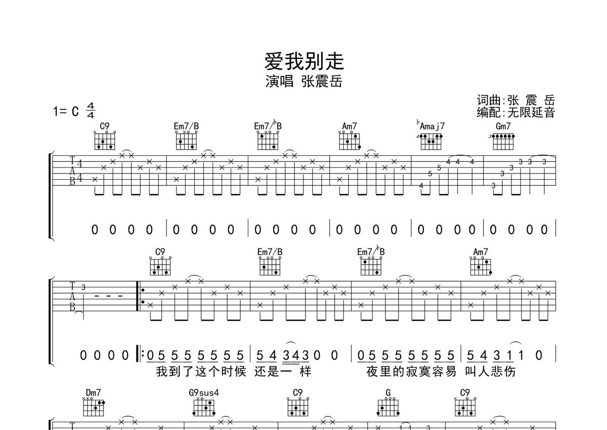 张震岳《爱我别走》吉他谱 - C调弹唱六线谱