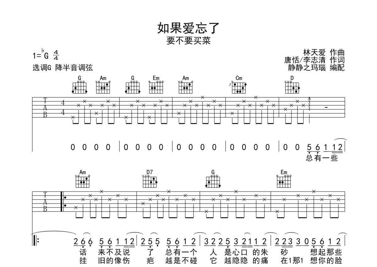 要不要买菜《如果爱忘了》吉他谱 - G调弹唱六线谱