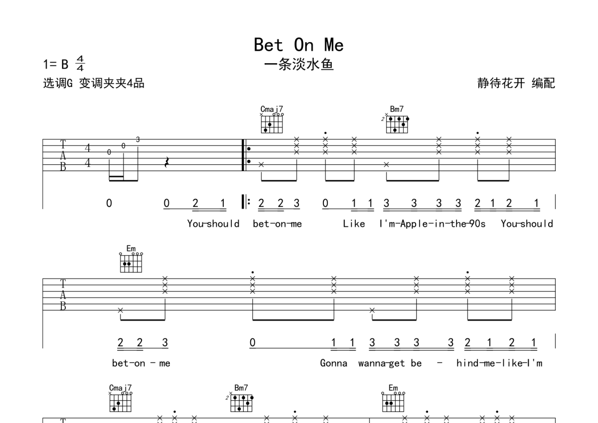 一条淡水鱼《Bet On Me》吉他谱 - G调弹唱六线谱