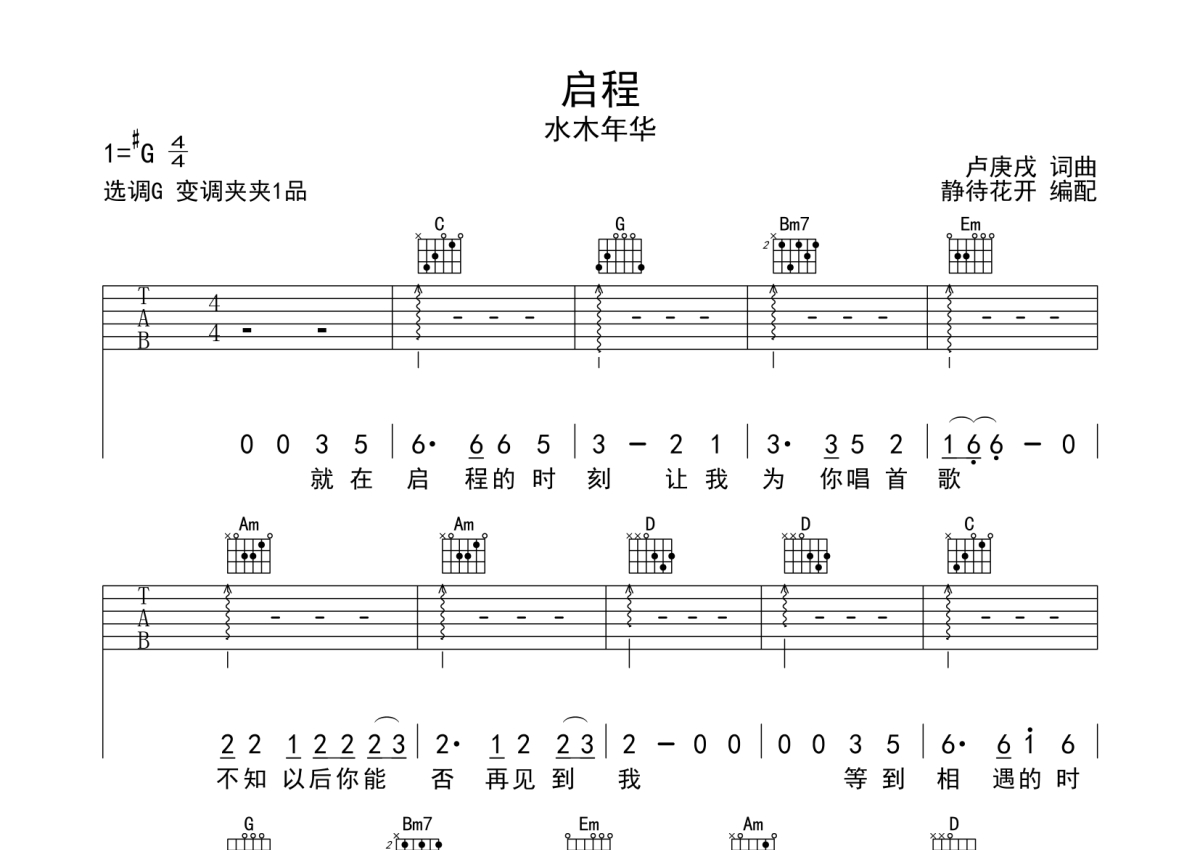 水木年华《启程》吉他谱 - G调弹唱六线谱