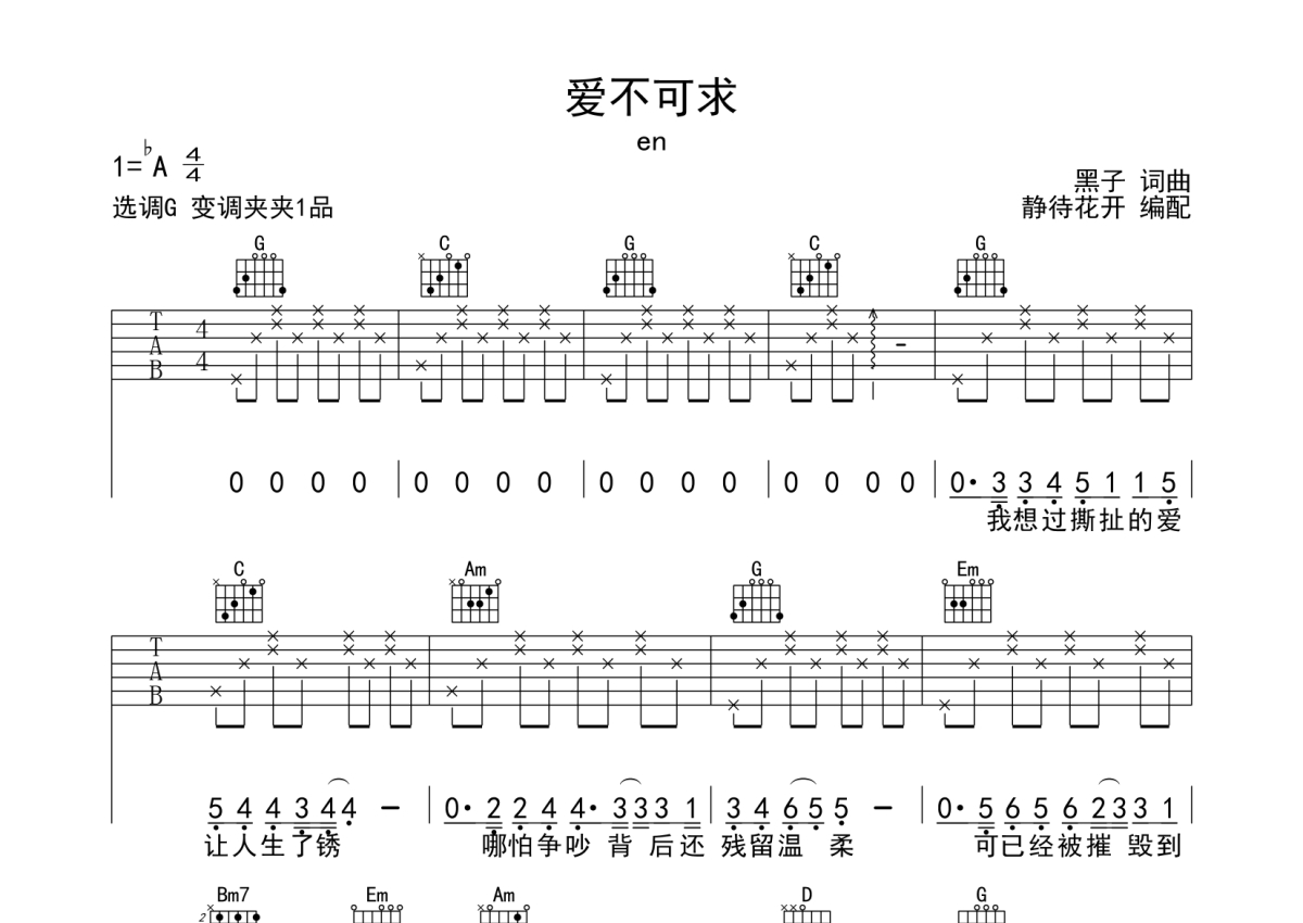 en《爱不可求》吉他谱 - G调弹唱六线谱