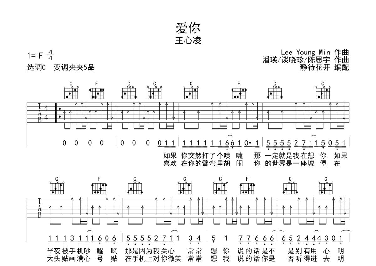 王心凌《爱你》吉他谱 - C调弹唱六线谱