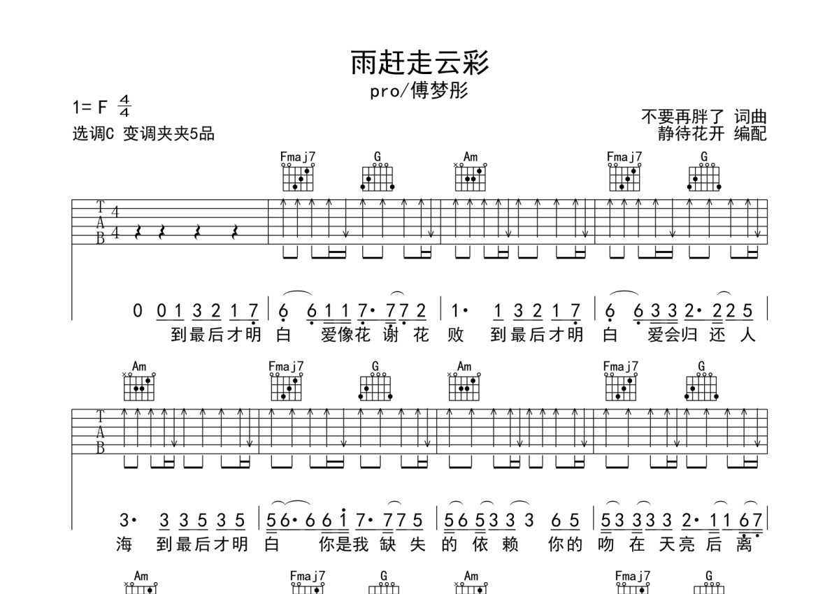 pro/傅梦彤《雨赶走云彩》吉他谱 - C调弹唱六线谱
