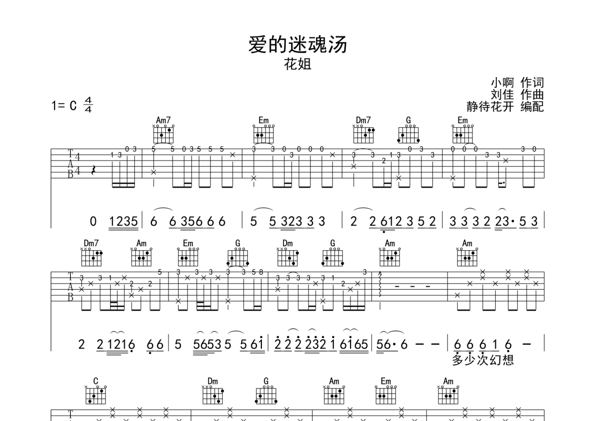 花姐《爱的迷魂汤》吉他谱 - C调弹唱六线谱