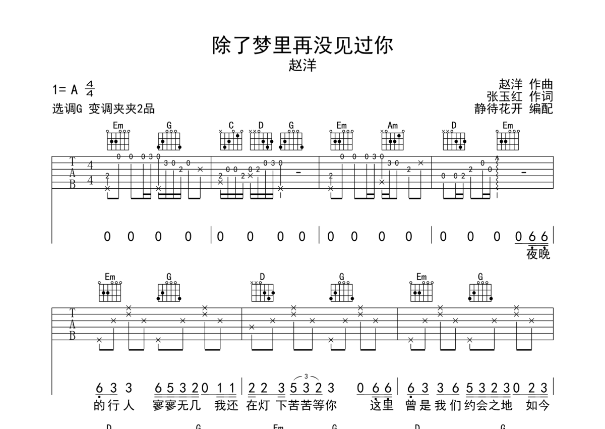 赵洋《除了梦里再没见过你》吉他谱 - G调弹唱六线谱