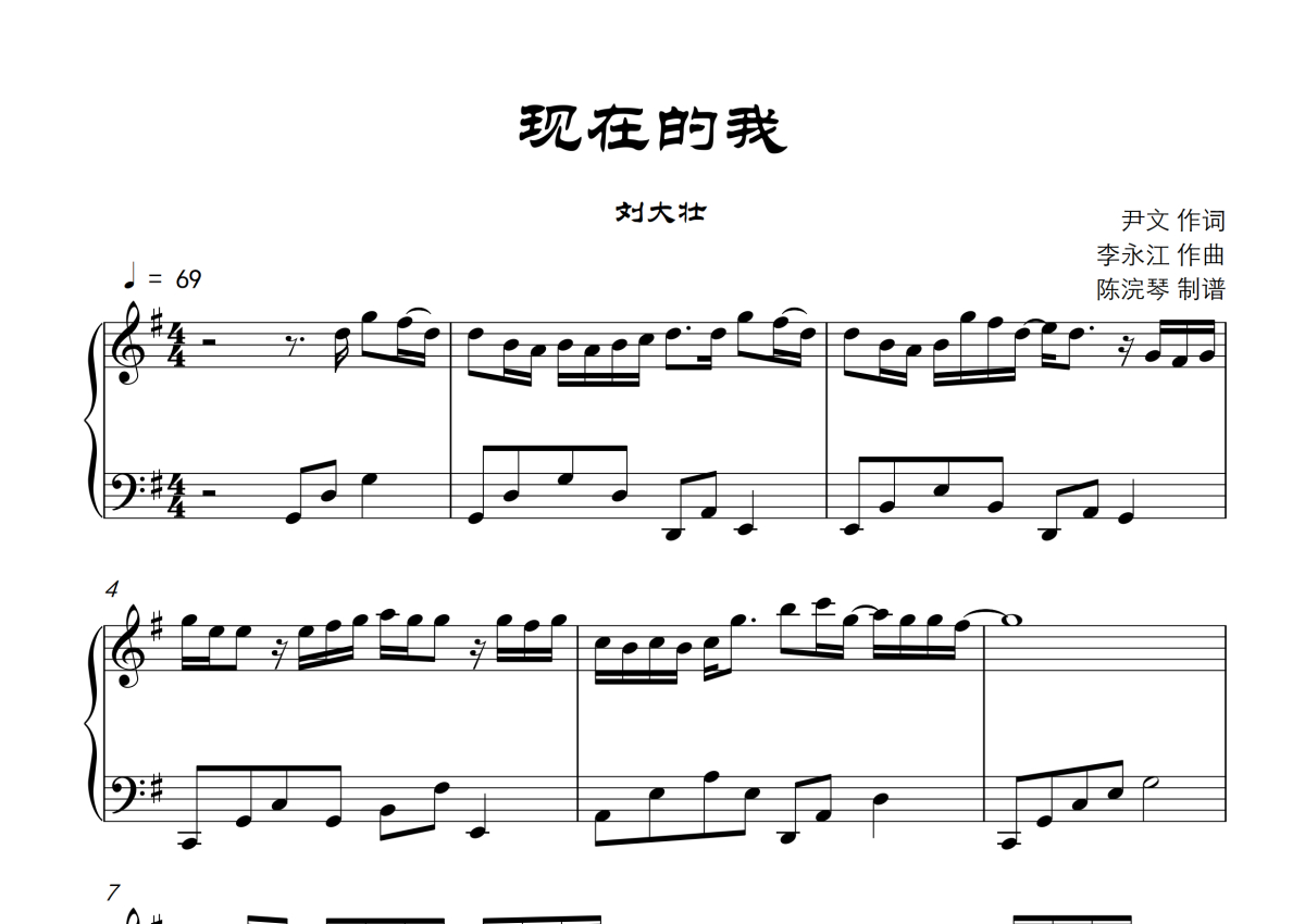 刘大壮《现在的我》钢琴谱 - G调钢琴谱,附歌词