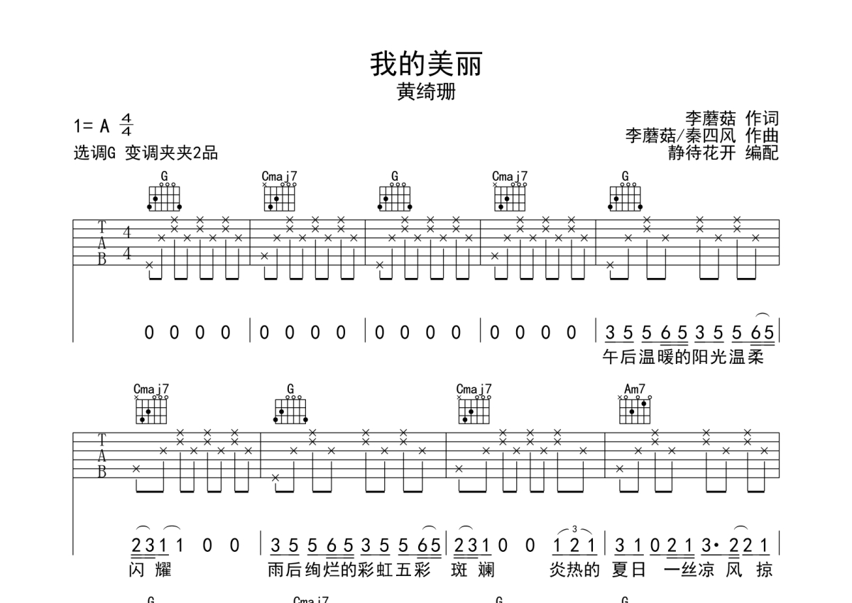 黄绮珊《我的美丽》吉他谱 - G调弹唱六线谱