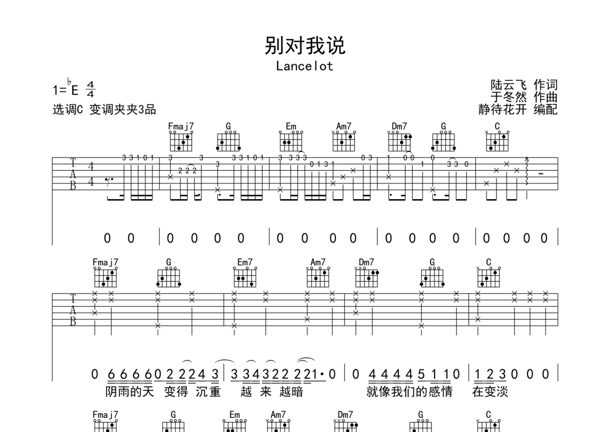 Lancelot《别对我说》吉他谱 - C调弹唱六线谱
