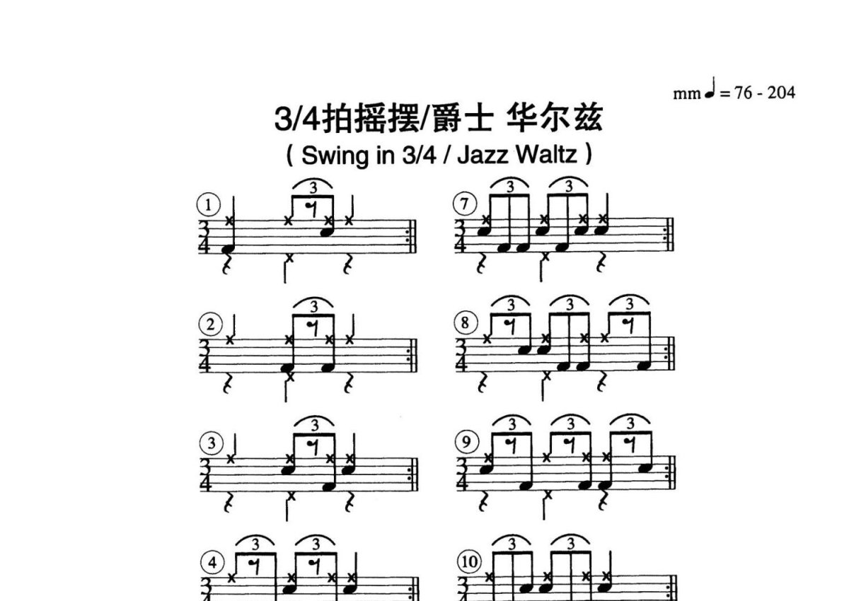 节奏大全《3/4爵士华尔兹》鼓谱 - 架子鼓谱