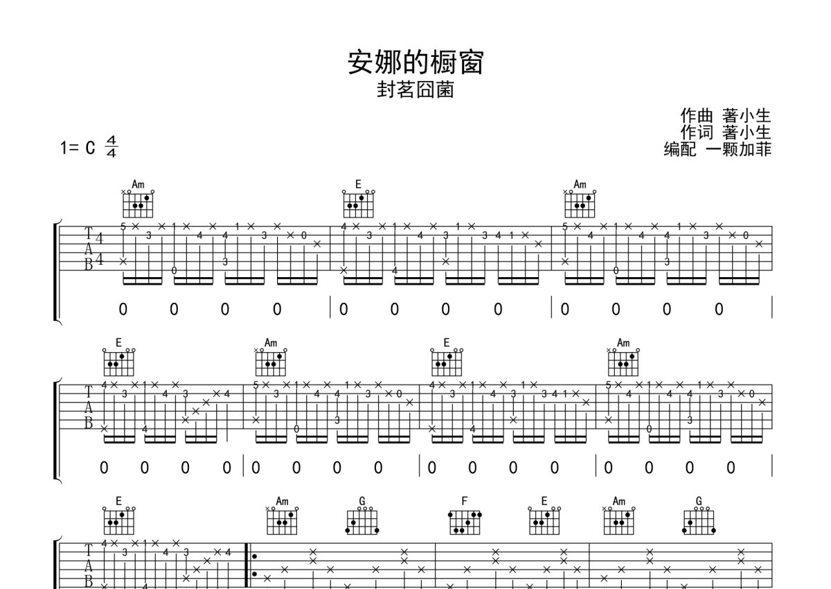 封茗囧菌《安娜的橱窗》吉他谱 - C调弹唱六线谱 - 完整编配版