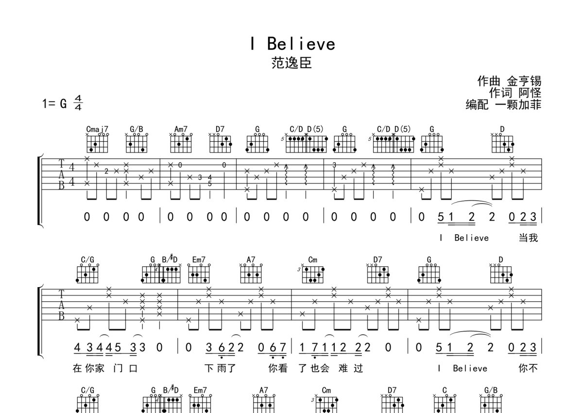 范逸臣《I Believe》吉他谱 - G调弹唱六线谱 - 完整编配版