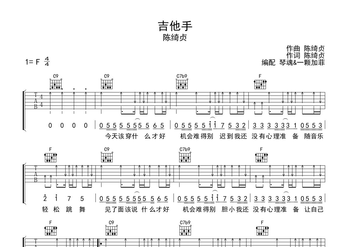 陈绮贞《吉他手》吉他谱 - F调弹唱六线谱