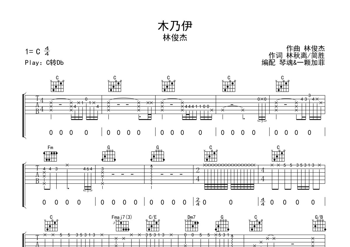 林俊杰《木乃伊》吉他谱 - C调弹唱六线谱